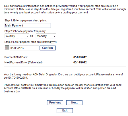 You can create a New Payment by indicating the dollar amount, the frequency, the payment description and start date of the payment.