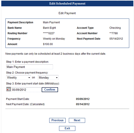 You can Edit an existing payment at anytime by changing the amounts withheld or the schedule and frequency of that payment.